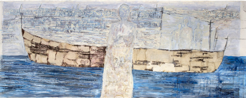 Rina Buberoglu moves through different stations of time and place, creating an intimate space, both as a concrete life story, and as a tool for observing universal and transcendent meanings. In the corpus of her work, she turns a compassionate gaze towards refugees and those who have been expelled from their countries, who are tossed from side to side in a fragile boat on the boundless sea, pleading for mercy.