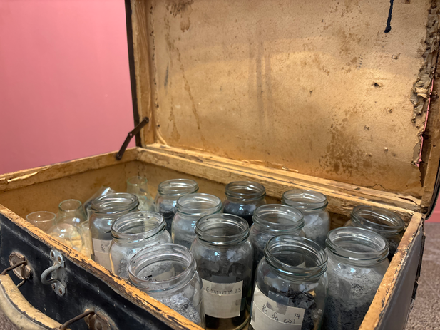 בחלל התערוכה מוצבת מזוודה שהיא ארכיון דחוס של מקומות ושל עבודות קודמות של שחר שנשרפו, בתוכה צנצנות אפר וכוסות רוח כשרידים של פעולה רדיקלית ושל מחוות ריפוי.