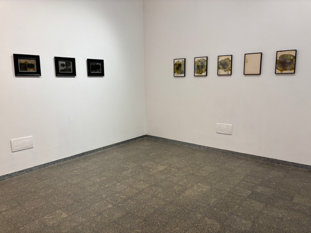 تمتص الورقة طبقات الألوان المائية كبقع ناعمة وهشة، بينما تقوم طبقة الصمغ (الريزين) بختمها وتعميقها، رابطةً الصورة بمادية من نوع אחר. هذا المسار المزدوج لا يؤدي إلى فك الرموز، بل يترك الأعمال مشحونة بتعدد رقيق من الاحتمالات. هكذا يُفتح فضاء ينسج فيه الزمن بشكل غير خطي، ويُدعى المتأمل للوقوف أمام شيء لا يتطلب حلًا، بل يتواجد باستمرار، فوق وتحت سطح الأرض.